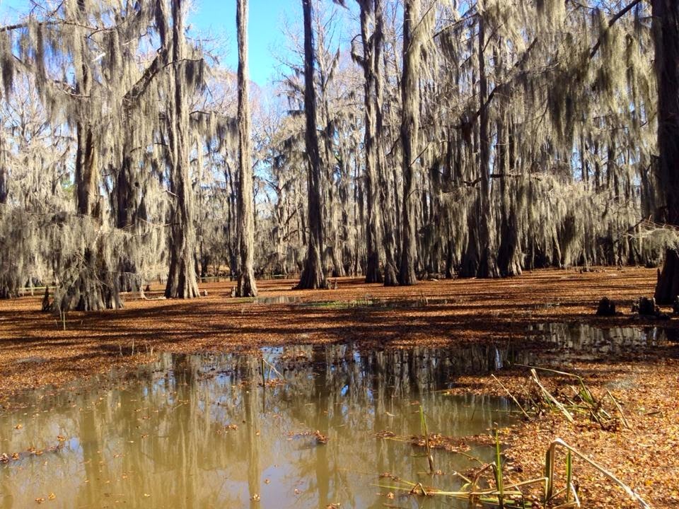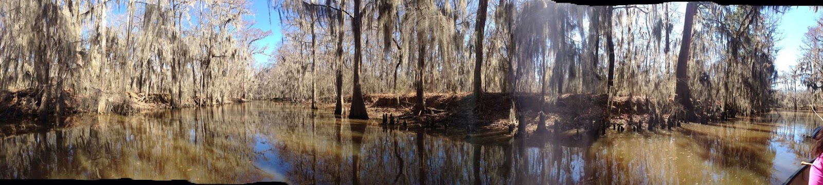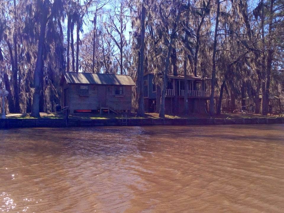 Curious about that muck on the water surface? It's a non-native water plant introduced to the area and has been giving the locals, fishermen, boaters, and tourists headaches for several years. Article regarding the on-going attempts to annihilate the stuff: http://cise.tamu.edu/caddo