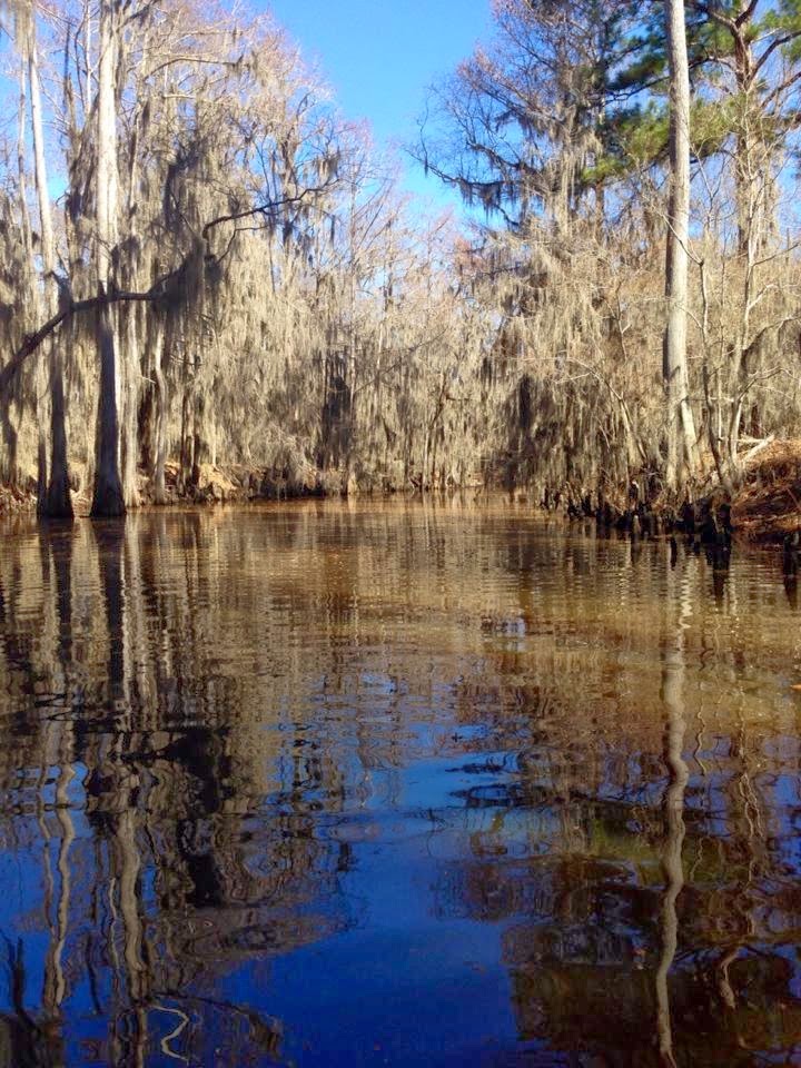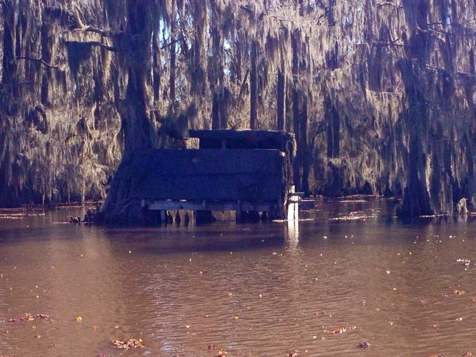 Curious about that muck on the water surface? It's a non-native water plant introduced to the area and has been giving the locals, fishermen, boaters, and tourists headaches for several years. Article regarding the on-going attempts to annihilate the stuff: http://cise.tamu.edu/caddo