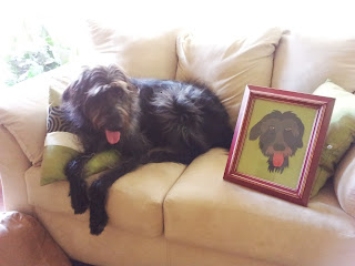 I've nearly graduated from wedding thank you note PhD school, but do have some left to send out after receiving a few more surprises at a Dallas-area party that was hosted by our friends Anne and Rick. Not a bad time was reported or observed by any, and our New Orleans inspired catering was a plate cleaner. Anne's sister, a creative talent it seems, was commissioned by Anne to create the priceless dog portraits seen here (with their subjects), a 100% thrilling surprise for Charley and me: