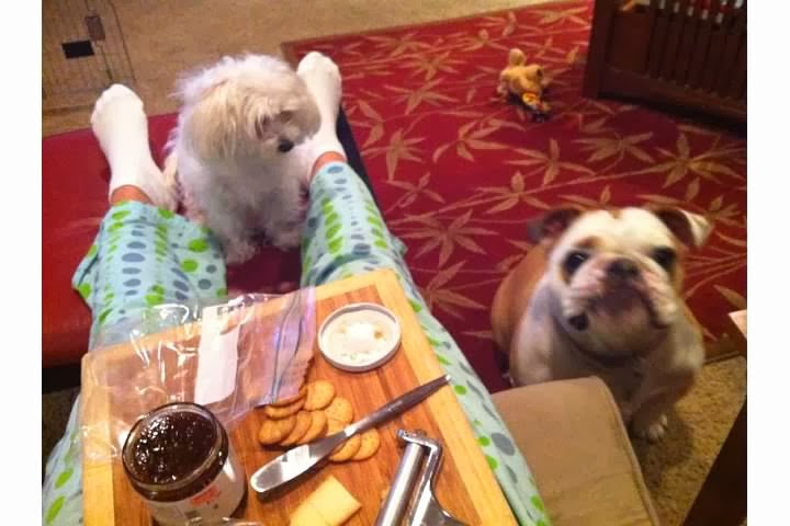 Seen below: Wende, our canine and feline audience (translation: sappy-eyed beggars), along with her