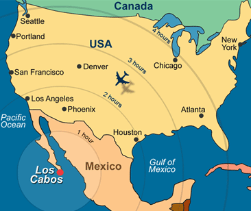 This time, it was my opportunity to lead the masses! Well, as massive as a class tends to be in the Caribbean during the slightly less busy summer season. Read: low class attendance. But that's ok! Come all, or, come one. I taught two classes daily and they were smartly scheduled back to back in the morning. Andrea and I then had the remainder of each day to ourselves to do as much or as little as we desired. Neither of us had yet traveled to Cabo San Lucas so this was a new experience for both of us. Here is a map of the area; with Cabo San Lucas pointed out on the Baja Peninsula: